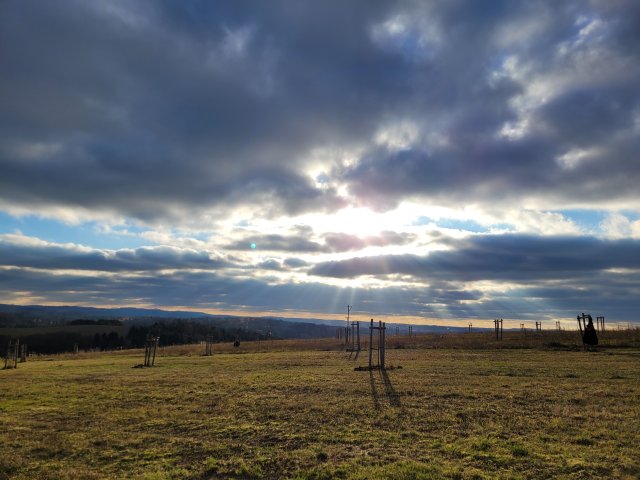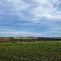 Grassy path through meadow, going on flat ground