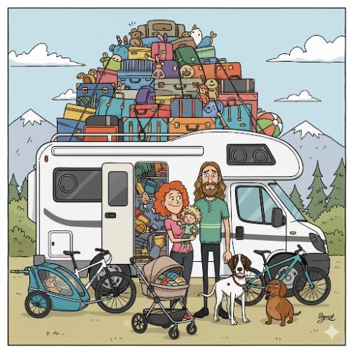 Milí majitelé pro jistotu posypali krátkou příjezdovou cestu, abychom vyjeli do mírného kopečku, což nebyl i s velikým obytňákem problém.