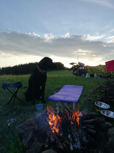 Krásné klidné místo, ve stínu borovic. Kadibudka čistá, ještě voní novotou. Velké ohniště s lavičkami a velkými kameny, které se dají využít jako odkládací plocha. Rovné místo na spaní je spíš na horní části pozemku. Měli jsme místo jen pro sebe, takže to bylo fajn. Místo je trochu menší, vhodnější spíš pro dvě posádky, co se znají 😊 Koupání v blízkém lomu krásné, ale voda ledová.